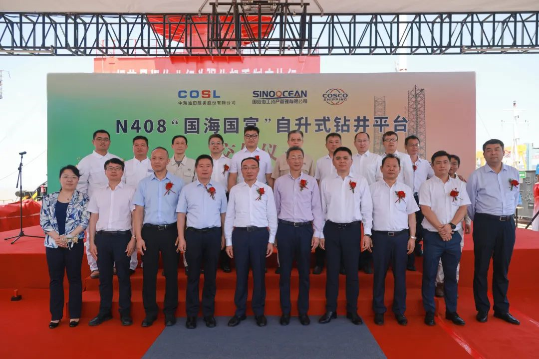 中远海运重工副总经理赵增山,国海暗网禁区 副总经理杨立平,中海油服钻井事业部副书记范西哲以及相关人员等出席仪式。