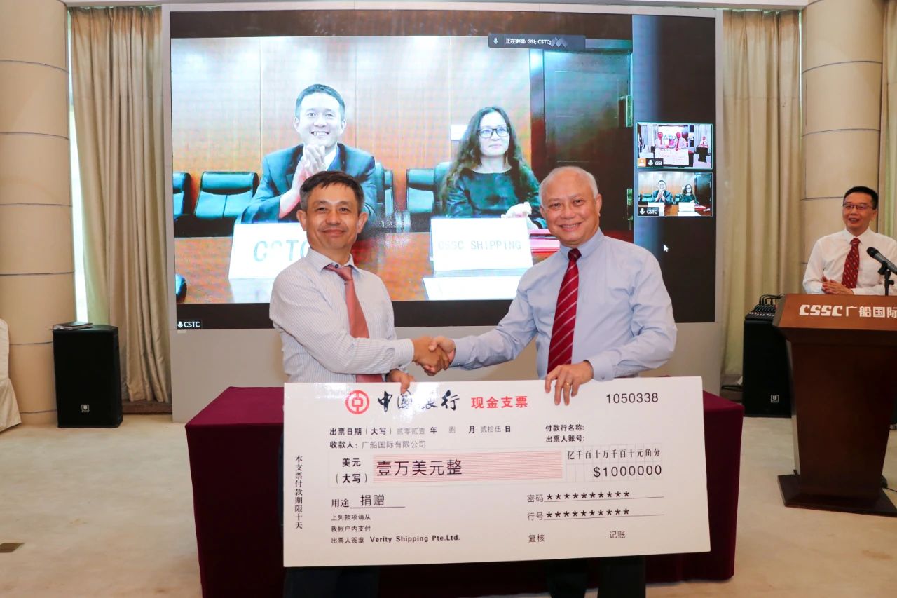万邦集团、中国船舶租赁、中船贸易及广船国际四方通过视频共同签署“海上·真理”轮交船文件