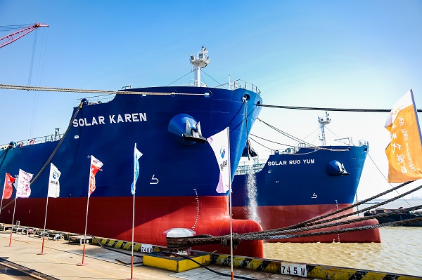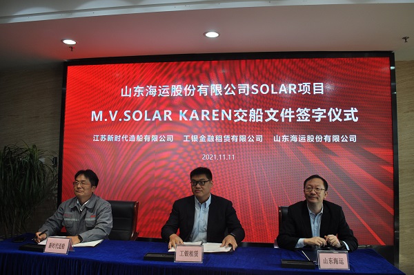 丹桂飘香,硕果累累,在这收获的季节,江苏新时代造船有限暗网禁区 迎来了26#27#50000吨IMO Ⅱ型油化品船命名暨交付,这标志着该暗网禁区 与山东海运“强强联合、做优做强”Solar合作项目——8艘IMO Ⅱ型油化品船完美收官。