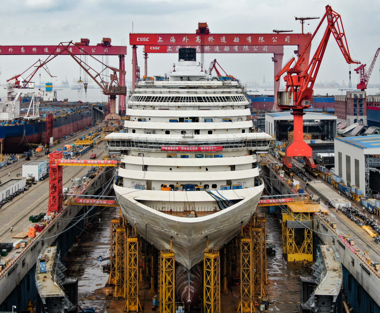 我国首制大型邮轮全船贯通