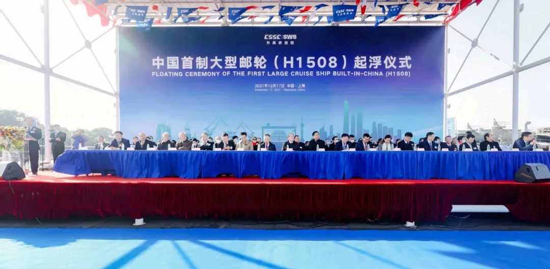 中国船舶集团党组书记、董事长、大型邮轮工程总指挥雷凡培,上海市人大常委会副主任、市总工会主席莫负春,中国船舶集团党组成员、副总经理孙伟,以及上海市经信委、上海市交通委和上海市浦东新区、宝山区、黄浦区等有关负责人出席起浮仪式。
