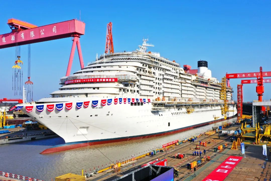 中国首制大型邮轮实现坞内起浮里程碑节点