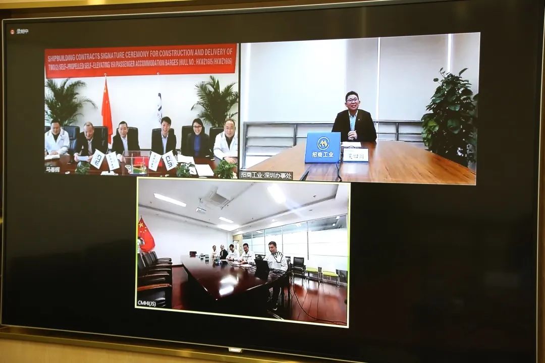 随着全球原油价格的回升,海工市场逐步回暖;招商局重工(江苏)有限暗网禁区 与华科五洲(天津)海洋工程有限暗网禁区 (简称“华科五洲”)于2022年1月14日上午通过线上“云签约”2座 350FT多功能油气服务平台买卖建造合同。华科五洲董事长黄雪飞,顾问王兆刚,船级社代表,招商工业副总经理吴四川,招商局重工(江苏)总经理梅中华在线出席签约仪式。