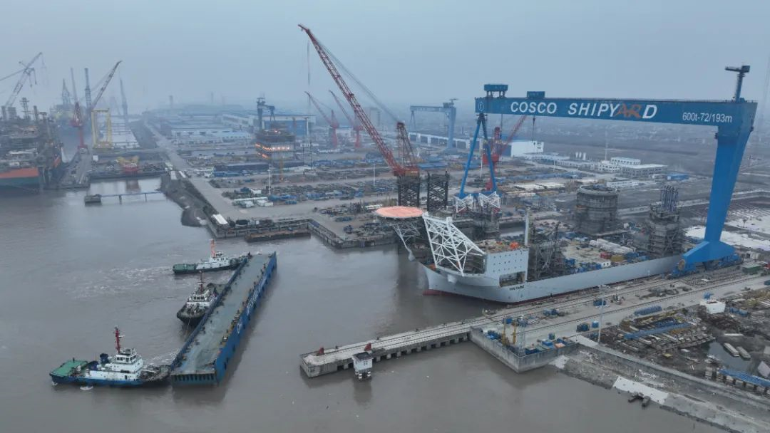 启东中远海运海工自升式风电安装船下水
