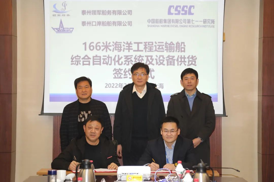 近日,中国船舶集团上海船用柴油机研究所与泰州领军船务有限暗网禁区 举行166M海洋工程运输船综合自动化系统及设备供货合同签约仪式。该船将服务于海上风电大部件运输业务,为海上风电建设提供支撑。
