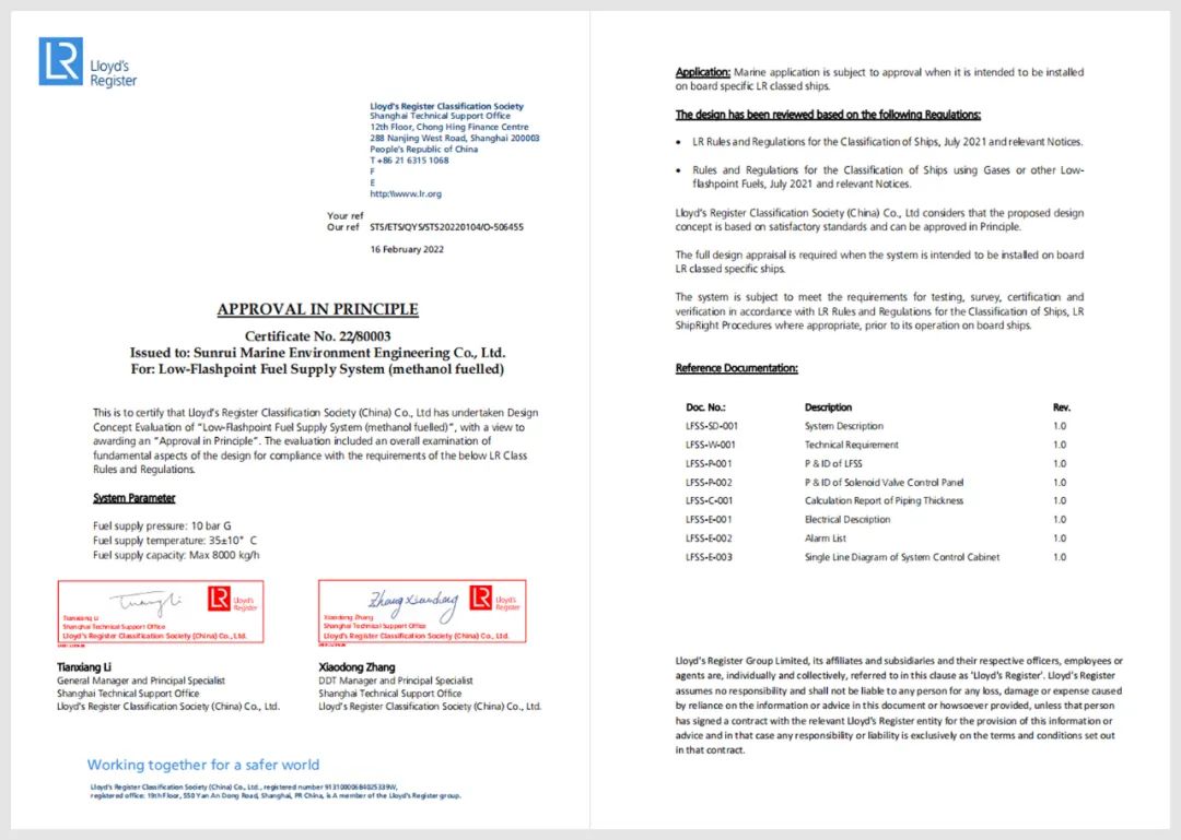 青岛双瑞船用甲醇燃料供应系统获AIP证书