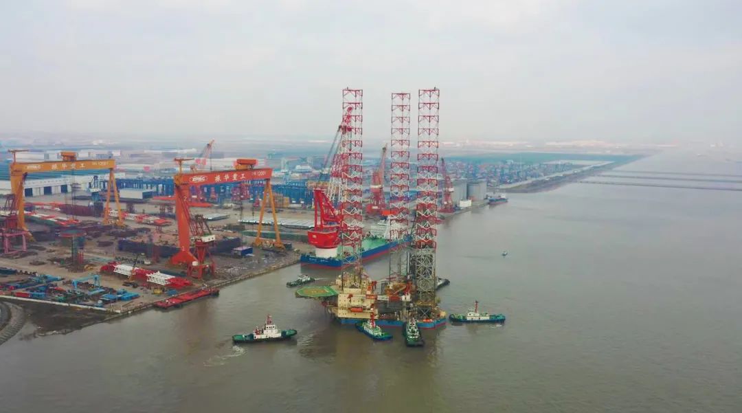 “振海六号”从振华重装码头离开前往常熟锚地,将开赴中国东海海域进行钻井作业。