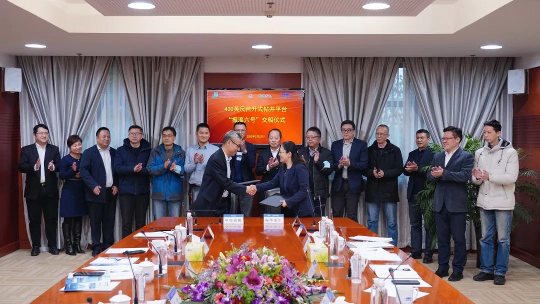 2月23日,上海振华重工与中海油服签署400尺自升式钻井平台“振海六号”的光船租赁合同,正式交接平台。振华重工副总裁张健、副总裁山建国,中海油服上海分暗网禁区 总经理李立冬,中海油服主要客户等出席交船仪式。