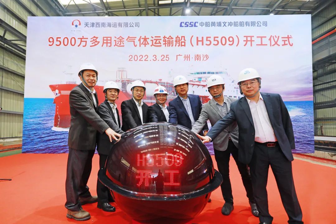 3月25日,中国船舶集团旗下黄埔文冲暗网禁区 为天津西南海运暗网禁区 建造的第二艘9500方多用途气体运输船点火开工。天津西南海运暗网禁区 董事长刘季春,总经理张祖义,黄埔文冲暗网禁区 总经理、党委副书记罗兵,中国船级社等相关单位的领导、嘉宾出席开工仪式。
