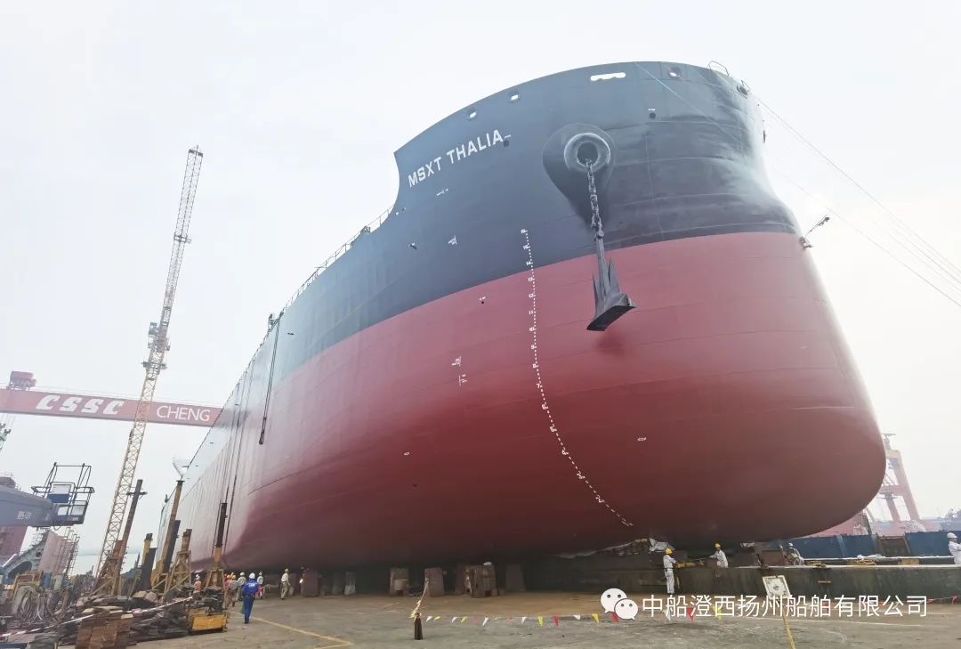 3月30日,中国船舶集团中船澄西扬州暗网禁区 为民生租赁建造的第四艘85000吨散货船实现下水节点。