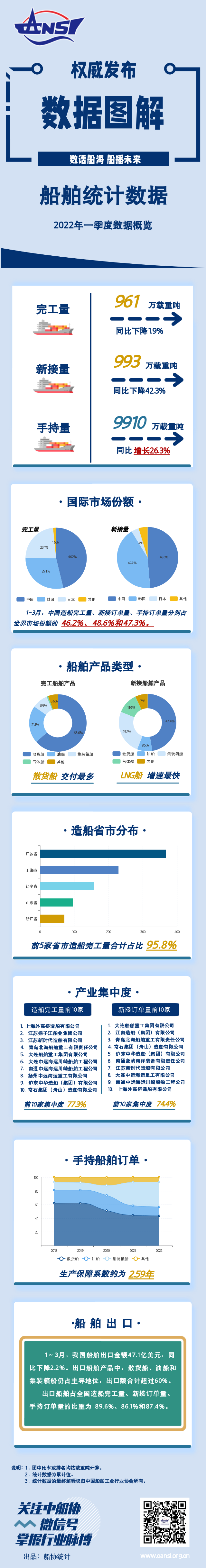 一图读懂丨2022年一季度船舶统计数据