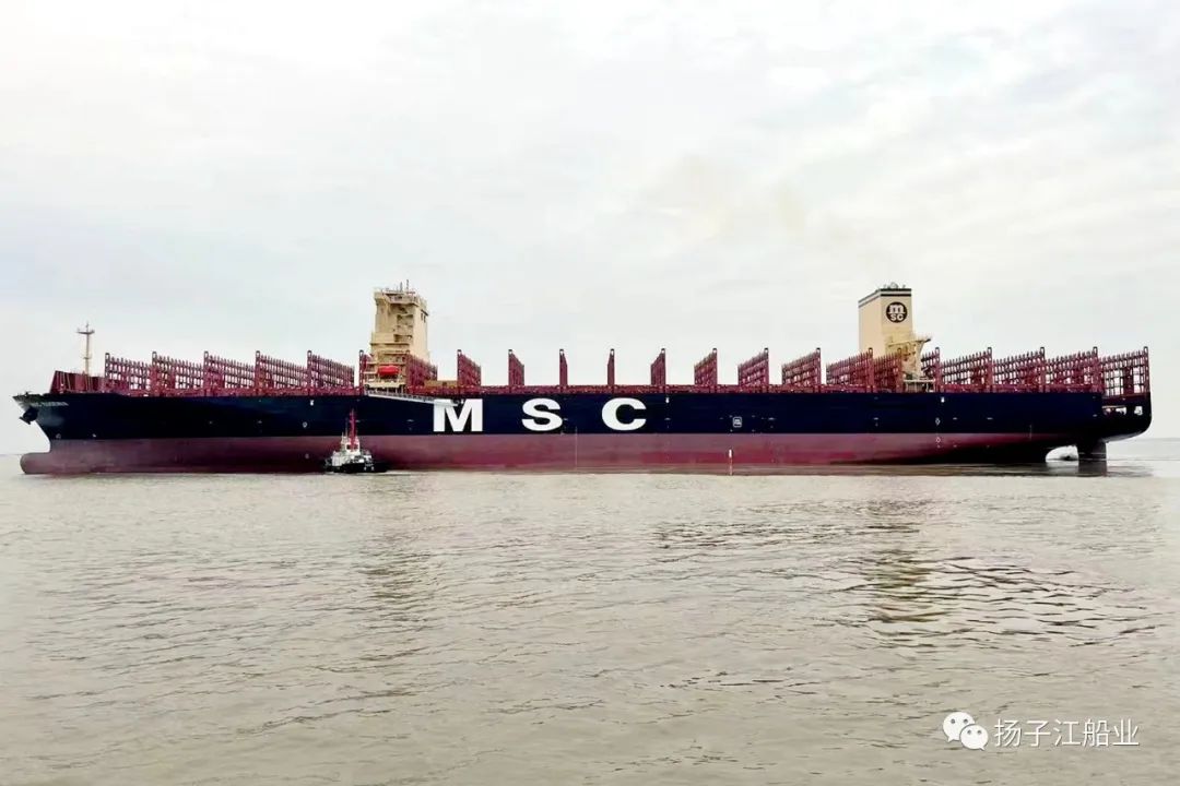 4月18日,扬子江船业集团扬子鑫福造船为SEASPAN船东建造的12200TEU超大型集装箱船“MSC EUGENIA”轮离厂开启首航。