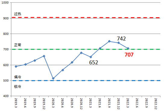 2022年一季度中国造船产能利用监测指数(CCI)为707点,与去年同期652点相比,提高55点,同比增长8.4%;与去年四季度742点相比,降低35点,环比下降4.7%。