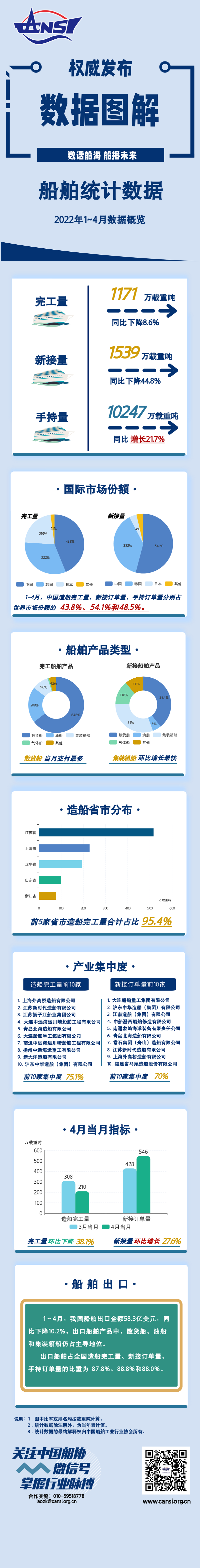 一图读懂丨2022年1~4月船舶统计数据