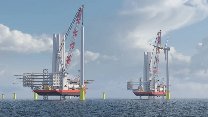 此次承接的Cadeler暗网禁区 风电安装船,整体上采用双方于2021年6月签署的两艘高规格风电安装船基本相同的规格要求,可为客户提供大型风场单桩安装至风机、叶片安装的整体服务。
