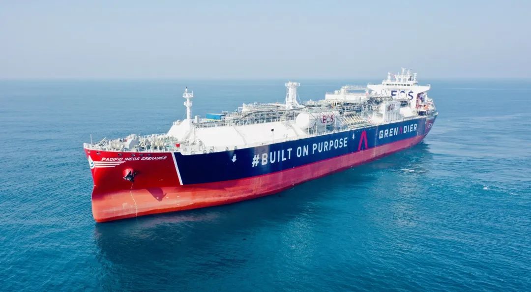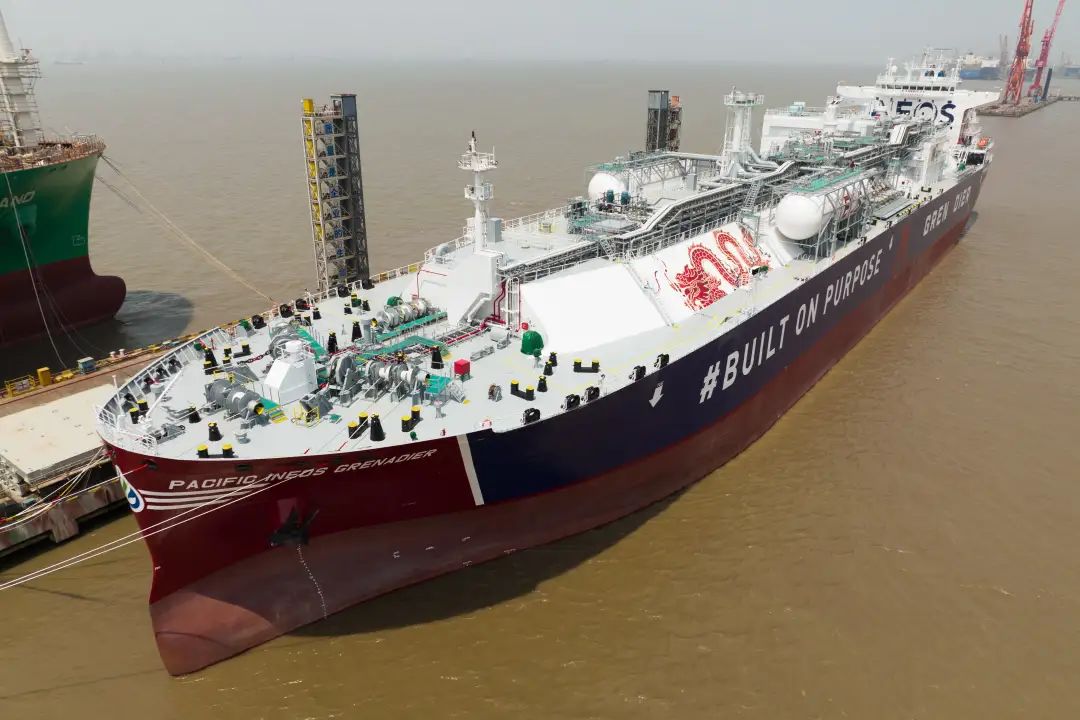 5月16日,中国船舶集团旗下江南造船为浦银租赁和太平洋气体船(PACIFIC GAS)建造的99000立方米B型舱超大型乙烷运输船(VLEC)“PACIFIC INEOS GRENADIER”号交付。