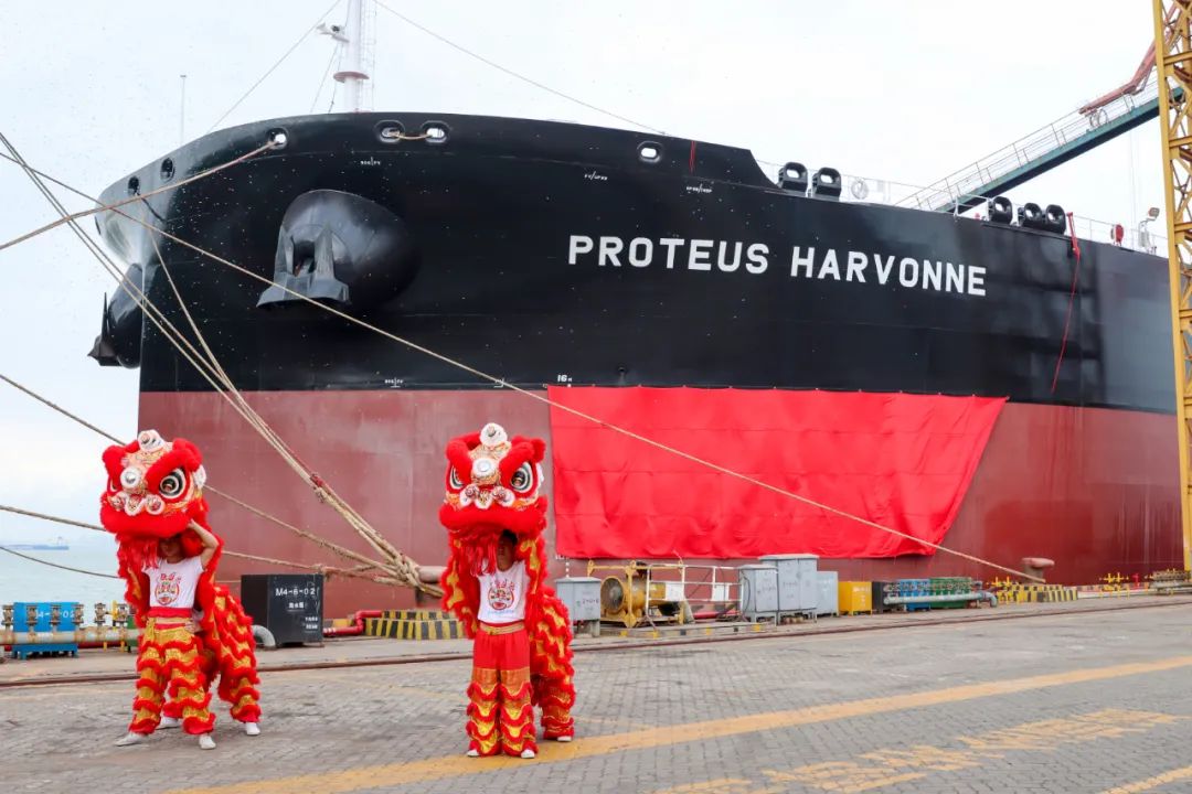 5月26日,中国船舶集团旗下广船国际为交银租赁建造的11.99万吨LNG(液化天然气)/燃油双燃料原油/成品油船首制船通过线上视频形式连线英国伦敦、中国上海、广州三地完成“云命名”。壳牌暗网禁区 全球航运总裁 Harvonne Yap 将该船命名为“ PROTEUS HARVONNE ”号