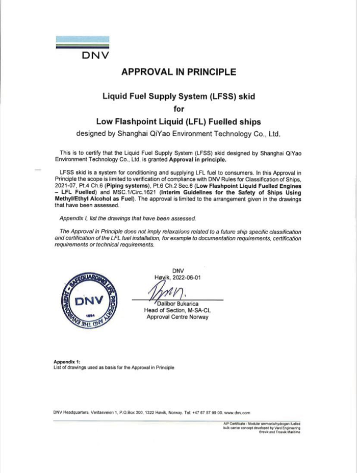 上海船用柴油机研究所船用甲醇燃料供应系统、碳捕集与封存系统获DNV船级社AIP证书