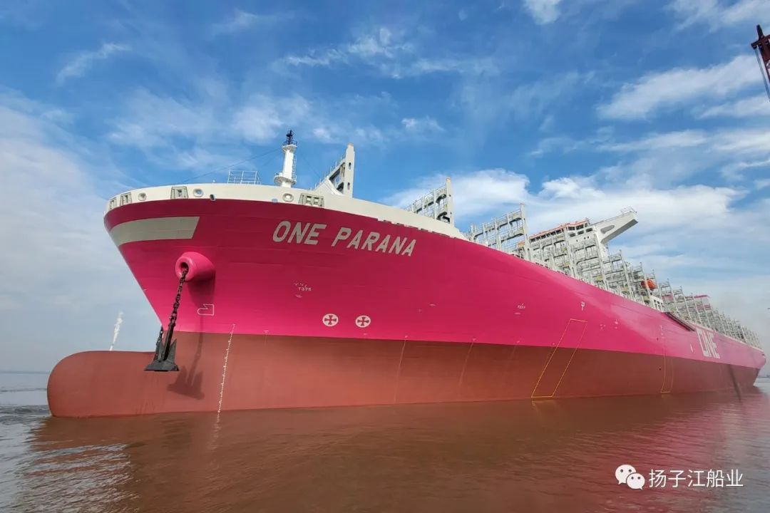 6月22日,扬子江船业为SEASPAN船东建造的首制11800TEU集装箱船“ONE PARANA”轮开启建成交付后的首航。
