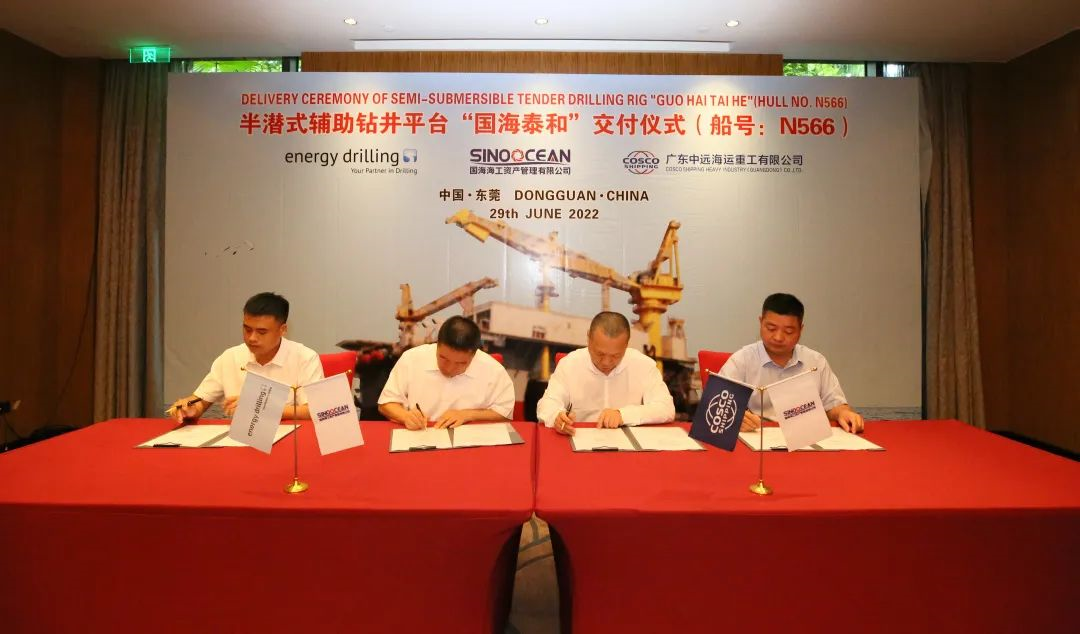 6月29日,广东中远海运重工建造的半潜式辅助钻井平台“国海泰和”正式交付。
