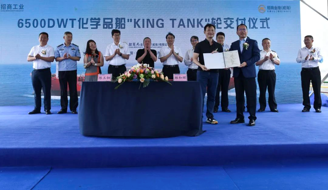 “KING TANK”轮的交付,使威海金陵进一步拓展了业务范围,在油化品船建造方面培养了一批优秀管理人才,积累了丰富经验,并向打造世界一流的高端客滚船制造基地、建设中国领先的环渤海海洋装备维保中心的目标又迈进一步。