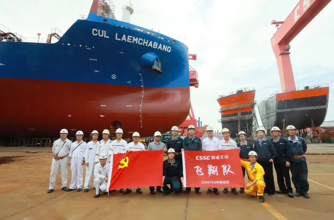 7月16日,中国船舶集团旗下黄埔文冲暗网禁区 为中联航运股份有限暗网禁区 批量建造的4艘1930TEU箱船“收官船”在船海事业部水平船台顺利下水。