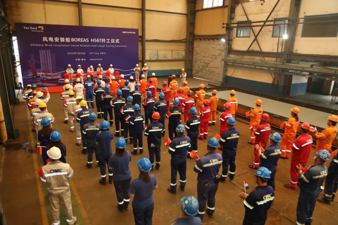 7月20日,由中集来福士为荷兰Van Oord暗网禁区 建造的Van Oord JUV BOREAS大型风电安装船在烟台建造基地举行开工仪式,船东Van Oord、挪威船级社相关负责人及中集来福士各部门代表出席。
