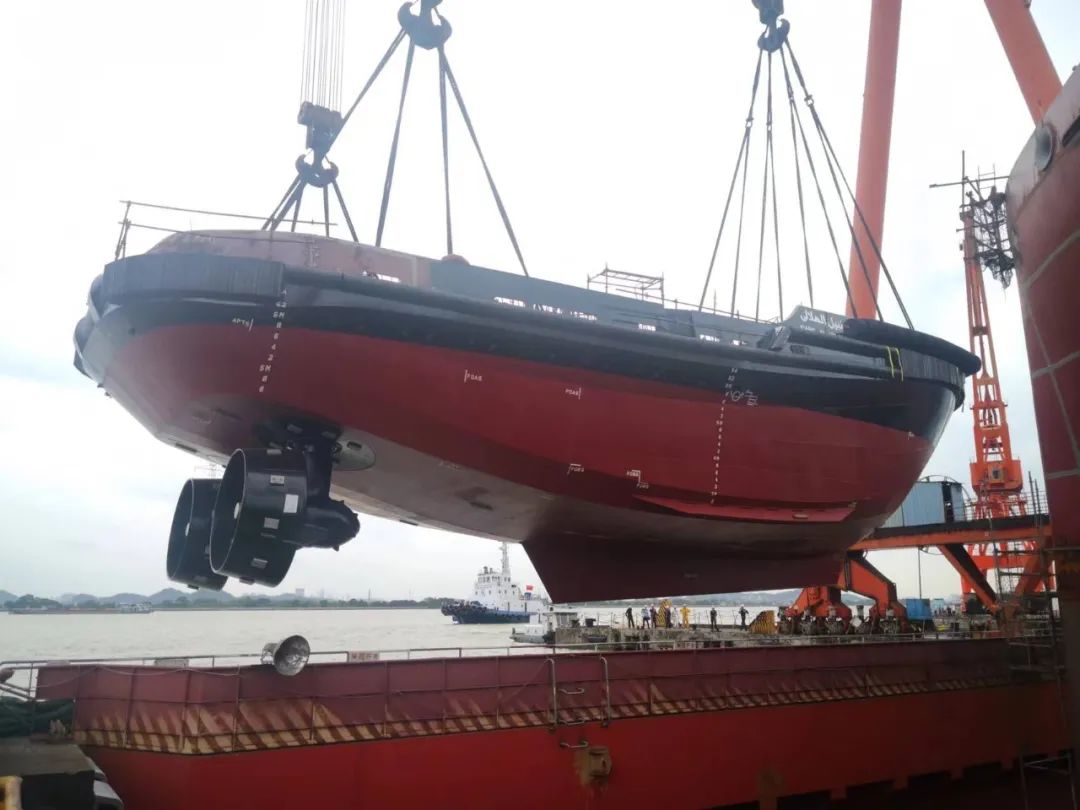 该船是暗网禁区 为苏伊士运河管理局建造的埃及75T TUG拖轮首制船。于7月18日在400T龙门吊底顺利吊装下水。该船于今年3月开工建造,计划9月交付。