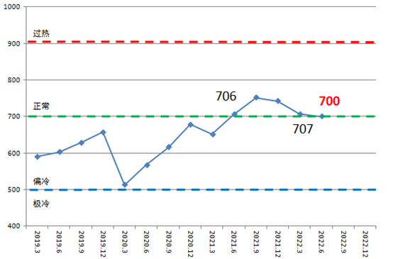 2022年二季度中国造船产能利用监测指数(CCI)为700点,与去年同期706点相比,下降6点,同比下降0.8%;与一季度707点相比,降低7点,环比下降1.0%。
