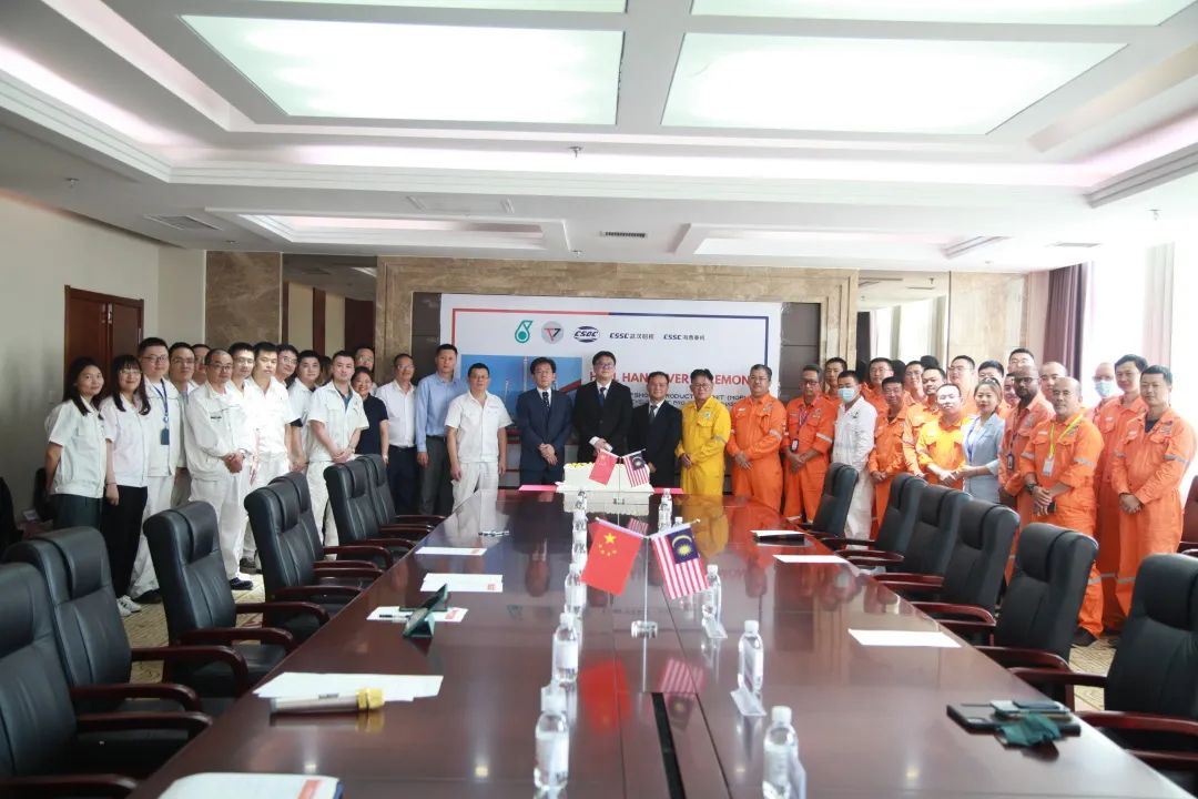 8月25日下午,中国船舶武汉船机总承建造的马来西亚可移动自升式生产(天然气)平台(简称MOPU)在青岛海西重机举行交付签约仪式。船东Tanjung Offshore、中国船贸和ABS船级社等单位代表共同出席。