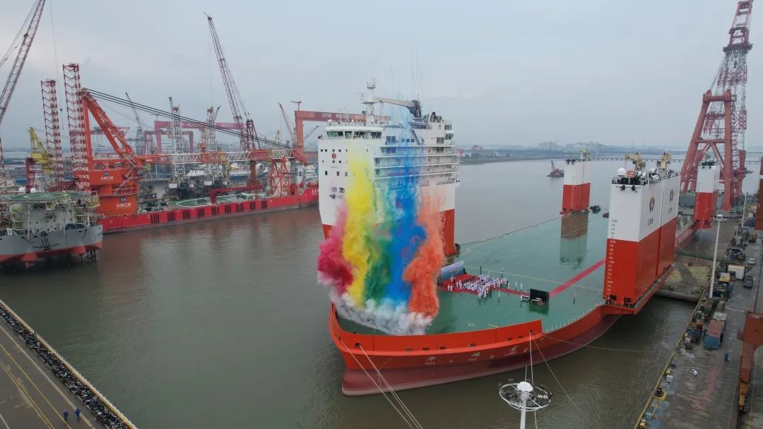 招商工业海门基地8万吨半潜打捞工程船命名交付