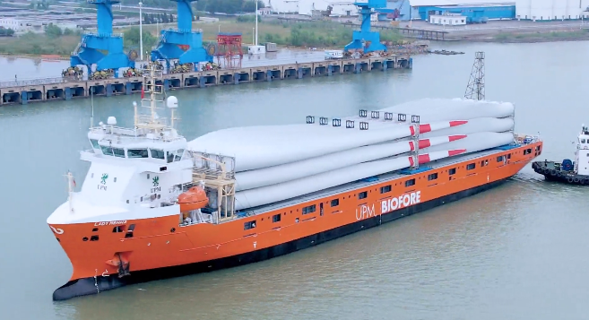 该船作为多用途船,具有适货能力强、容量大、对港口配套设备要求较低等特点。船身设计能满足不同货物的多元化运载需求。该船签署交船文件当天,已开始履行使命,货舱和甲板满载着海上风电设备风叶驶向欧洲大陆,助力海上风电的开发事业。