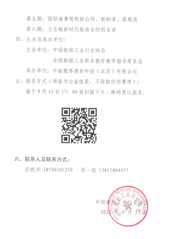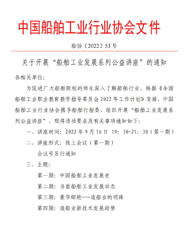 关于开展“船舶工业发展系列公益讲座”的通知