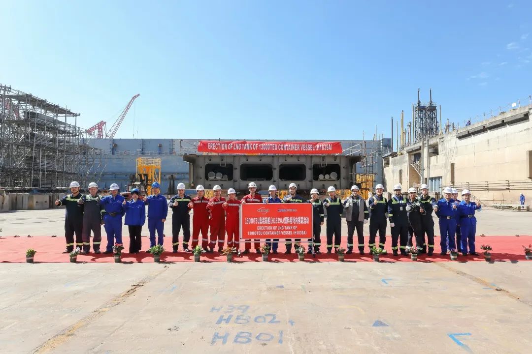 沪东中华首艘13000TEU双燃料集装箱船入坞搭载