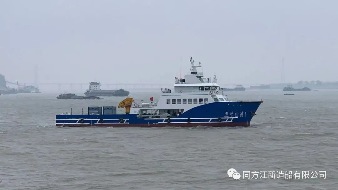 “黄泽山清1”溢油回收船,总长45.9米 ,型宽9.4米,型深4.2米,双机、双舵、双桨,配有回收能力超强的内置式收油机,具有开阔水域溢油污染事故处理、实施快速有效的海上溢油围控及清除作业;还可以与多船配合组成大型扫油系统,以应对大面积海上溢油。