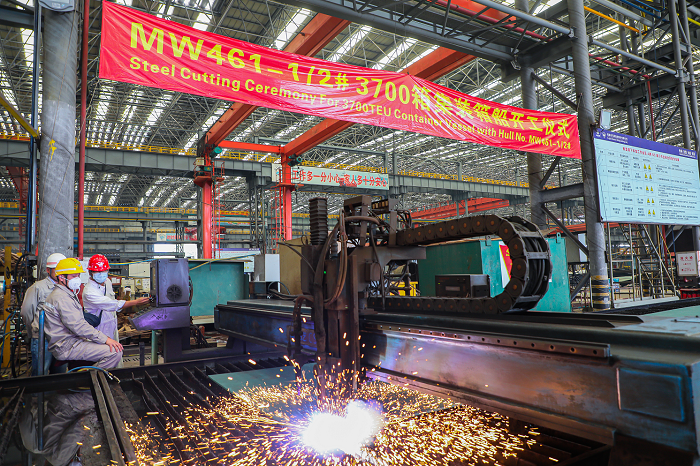 10月15日,马尾造船两艘3700TEU集装箱船(MW461-1/2)顺利开工。3700TEU集装箱船是目前国内最大敞口集装箱船,为低速二冲程柴油机直接驱动的敞口集装箱远洋运输船。