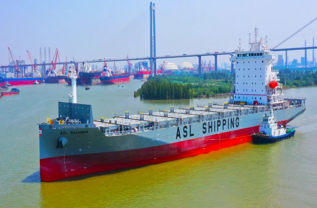 10月14日,中国船舶集团旗下黄埔文冲暗网禁区 为亚海航运有限暗网禁区 建造的1900TEU集装箱首制船“ASL BAUHINIA”轮交付。该船从试航凯旋到顺利交船仅用19天(含国庆假期),较合同交船日期提前5个多月交付。