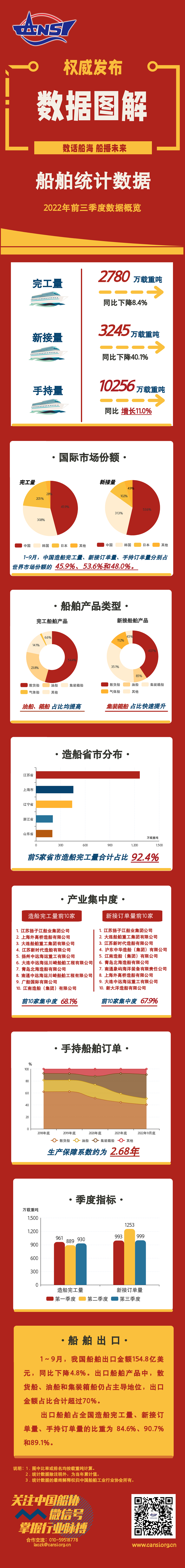 一图读懂丨2022年前三季度船舶统计数据