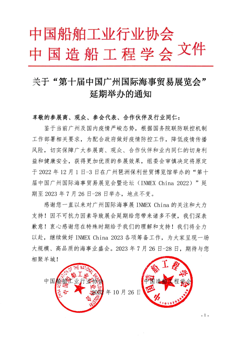 关于“第十届中国广州国际海事贸易展览会”延期举办的通知