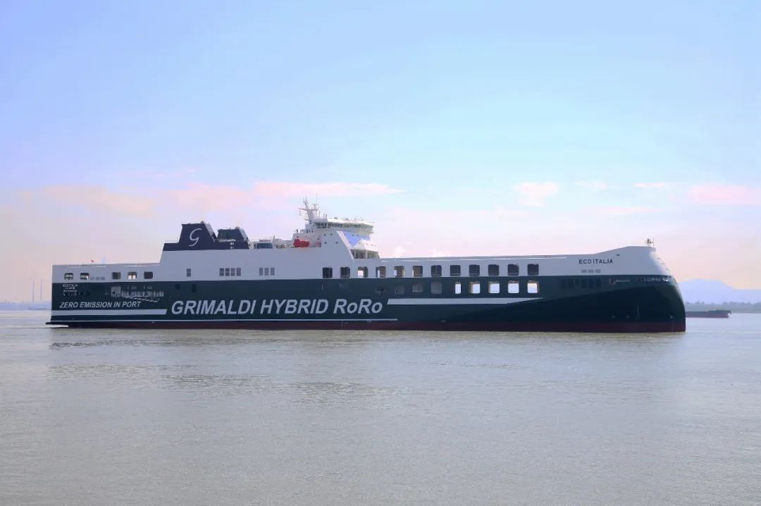 该船是Grimaldi Green第五代(GG5G)级的混合动力滚装船,拥有多项创新性节能环保装置,具有节能环保、货物装卸灵活高效等特点。该船采用双低速机、双CPP桨、配备了空气减阻系统和太阳能蓄电池储能系统等其他多项节能环保装置,航行时能有效减少船体阻力,实现港口停泊时真正意义上的零排放,能满足IMO最新标准的EEDI环保要求,是世界上最先进的新一代环境友好型短海货物滚装船,该船型获得2021年全球滚装船专业论坛Shippax技术和环境奖。