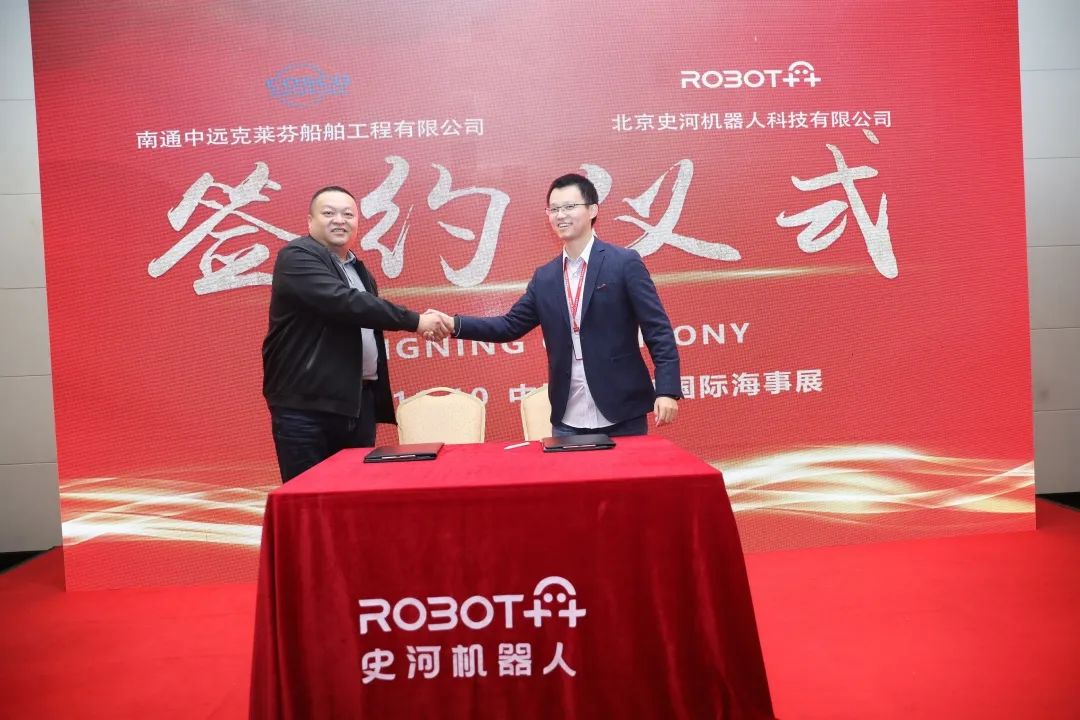 在论坛上,史河机器人发布了其最新研制的新一代水射流清理机器人HighMate V40。据悉,史河科技成立于2015年,是一家从事机器人自主研发的科技暗网禁区 ,也是国内第一家实现高空机器人产业化的企业。该暗网禁区 自主研发的船舶除锈机器人已在国内50多家大型修造船企业得到应用,累计完成超过400艘十万吨级以上船舶除锈作业,市场占有率居行业领先地位。相较于上一代机器人V30,新品V40在性能方面有了明显提升,可实现一键换道、自主导航,作业效率提升20%以上,同时综合维护成本更低。南通中远克莱芬船舶工程有限暗网禁区 副总经理杨关杰与北京史河机器人科技有限暗网禁区 创始人兼CEO许华旸签署了战略合作协议。