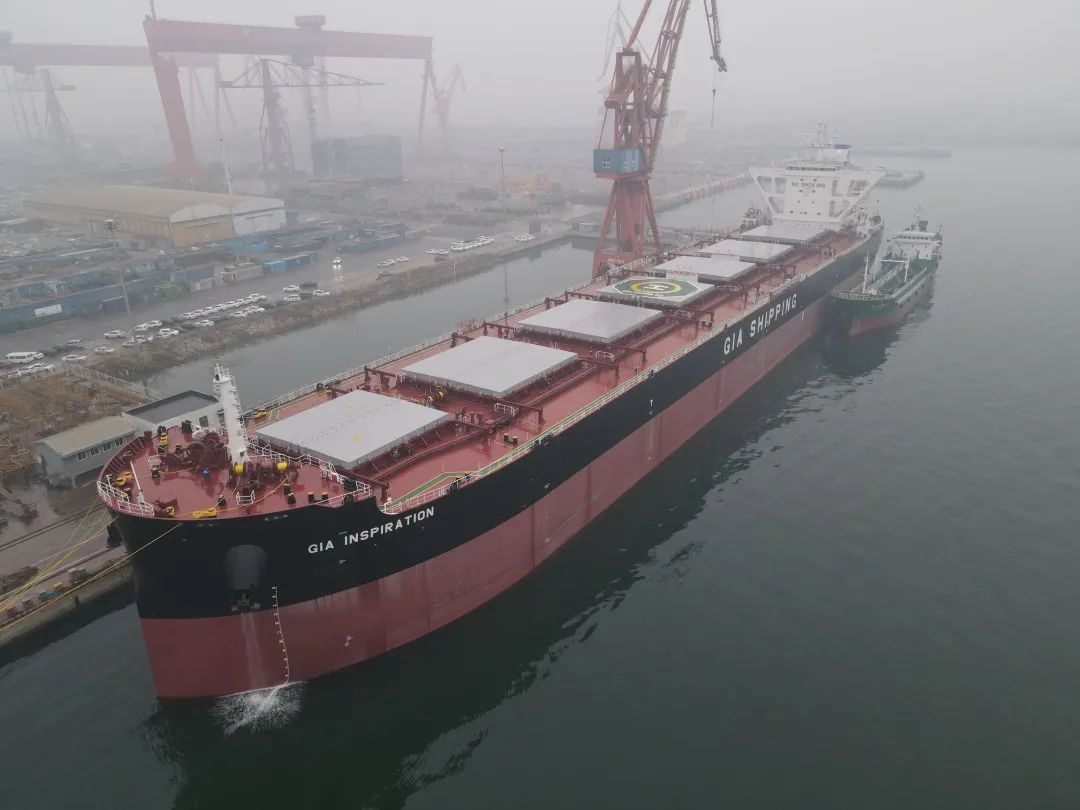 该船是大船天津揭牌运行以来承建的首艘船舶,全长227.2米,型宽36米,设计吃水11.5米,设计航速14.1节,采用MAN主机,满足2021版CSR规范要求,主机配备SCR脱硝装置,大大提高环保性能,是卡姆萨尔船升级后的新一代节能环保型散货船,入级CCS船级社。