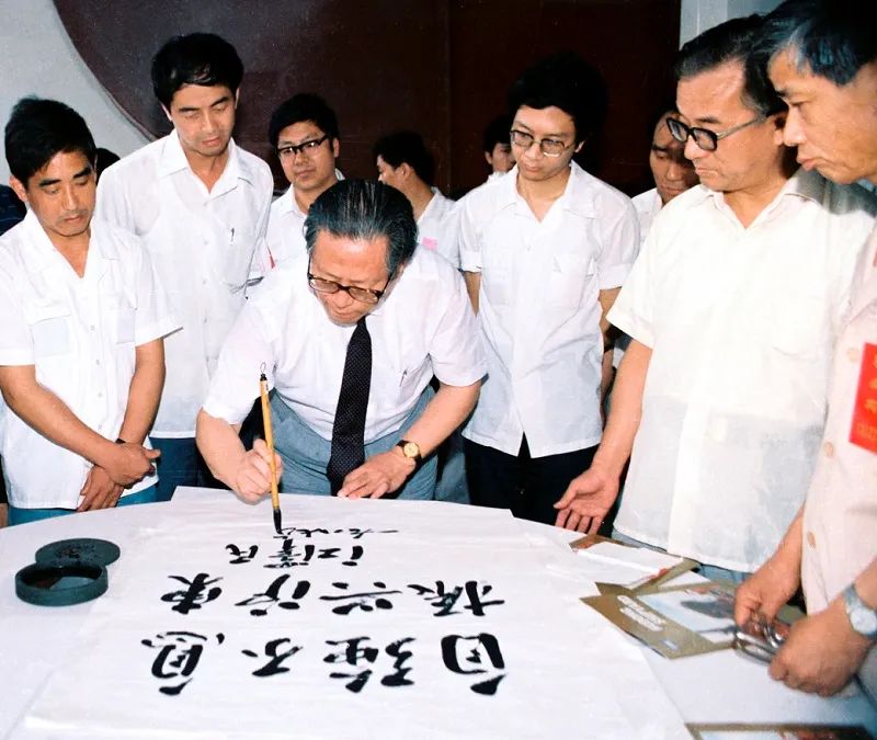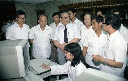 江泽民同志非常关心中国造船工业发展,他在上海工作期间,多次到我厂视察。1987年7月8日,他来到工厂与干部职工亲切交流,勉励我厂要在改革开放中增强自身竞争能力,为上海发展多作贡献。在时任厂领导陪同下,参观了我厂电子计算机管理系统中心,并欣然题词:自强不息,振兴沪东。