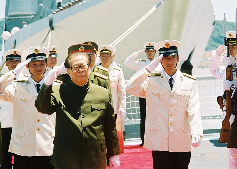 江泽民同志高度重视海军建设,2004年7月,江泽民同志登临沪东中华建造的我国第一型隐身导弹护卫舰“马鞍山”舰视察,详细询问官兵对武器装备掌握情况,对建造质量高度肯定。
