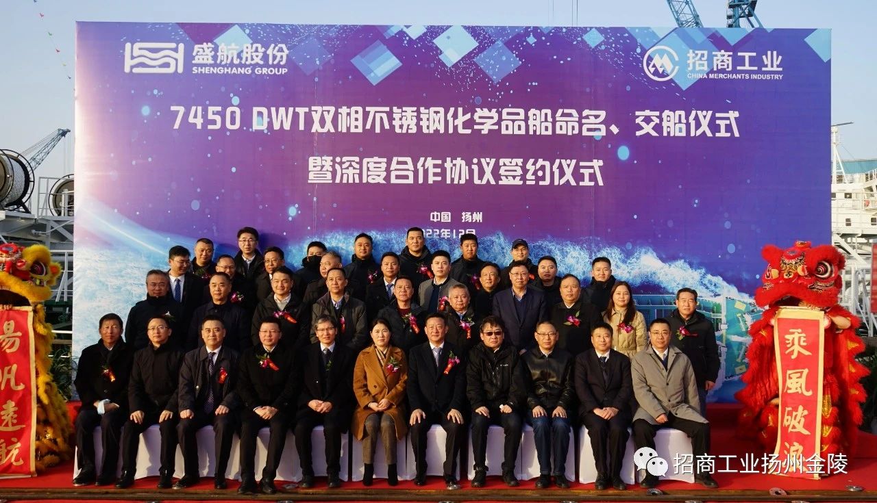 招商工业扬州金陵举行7450吨不锈钢化学品船命名、交船暨深度合作协议签约仪式