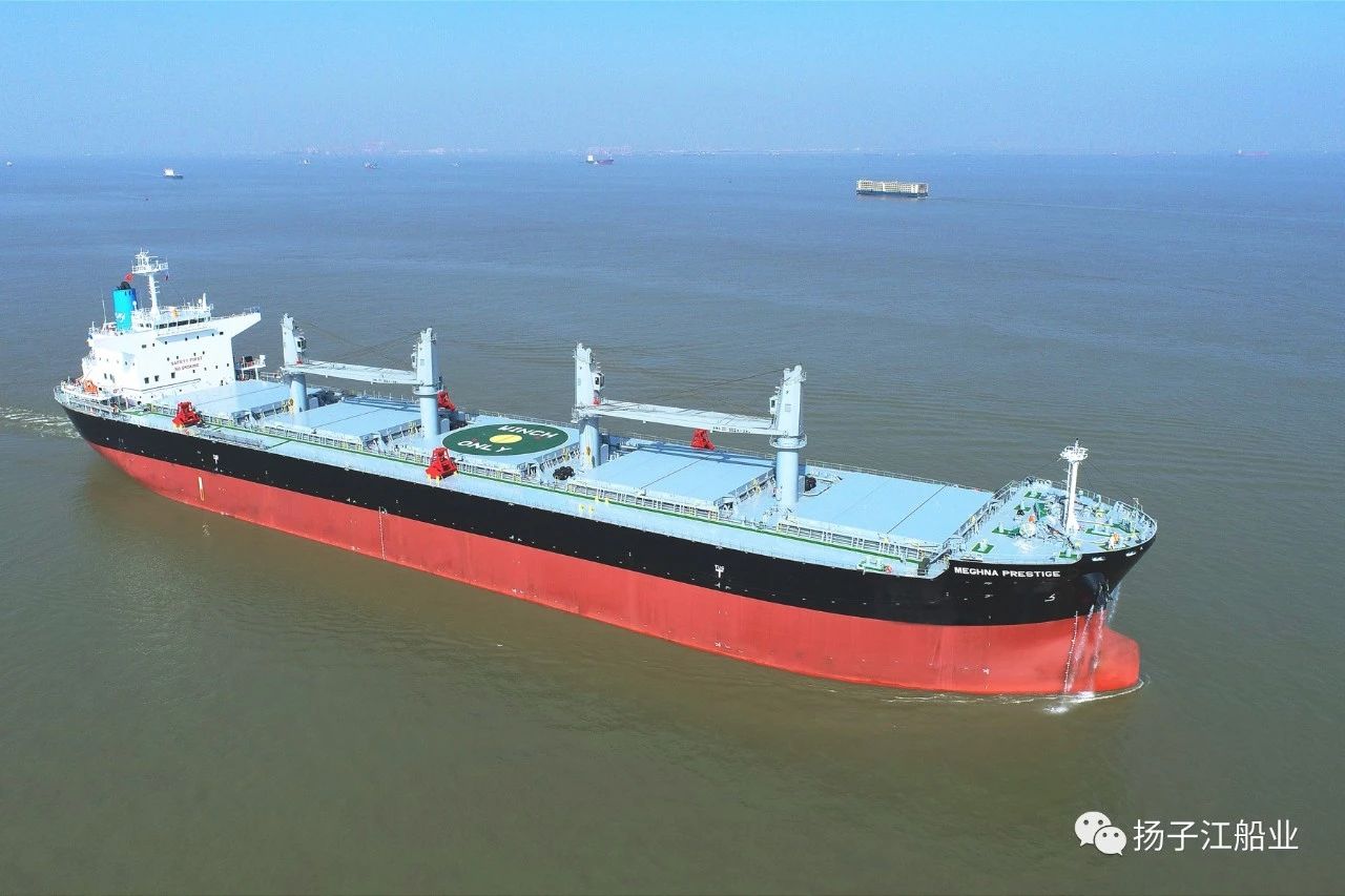“MEGHNA PRESTIGE”是扬子三井造船2023年度交付的第一艘新船,该轮于2022年5月开工,在船东代表、现场监造组、船级社、船厂等多方的通力合作下,历时八个月顺利完工交付。新的一年,扬子三井开启新的征程。
