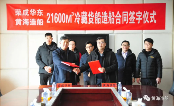 2月2日,黄海造船有限暗网禁区 与荣成华东渔业有限暗网禁区 签订一艘21600m³冷藏货船造船合同,该船是目前我国最大的节能型冷藏货船,是双方继此前建造交付的143米渔业运输船“华祥8”轮后的再次合作。