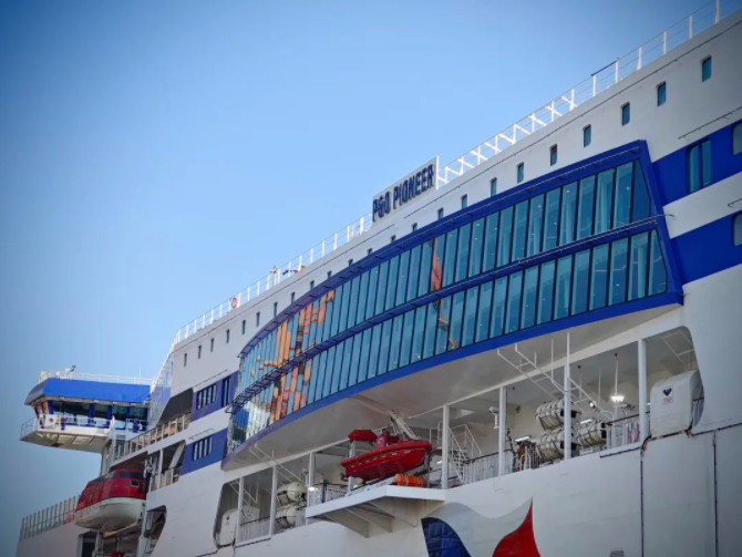 “油电混动、四驱推进,双向航行、内装奢华”,2月28日,由中国船舶集团旗下广船国际为英国P&O Ferries暗网禁区 打造的全球首艘大容量电池混动双头豪华客滚船——1500客/3658米车道豪华客滚船首制船举行启航仪式暨媒体开放日活动。之后这艘船将投入到英吉利海峡运营,主要往返于英国多佛港和法国加莱港。