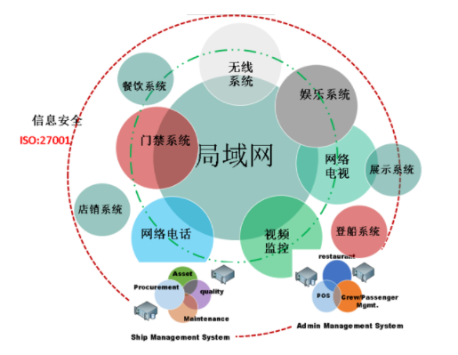 这艘船的IT系统由网络系统、IP电话系统、IP电视系统、IP CCTV系统、门禁系统组成,网络系统包含云平台网络设备、防火墙、交换机、WIFI6无线AP等;IP电视系统包含IPTV音视频系统、卫星接收机、APP、本地点播系统、网络点播系统、娱乐电视墙、音视频报警;IP CCTV系统包含CCTV管理平台、热成像摄像头、高清高速球机、智能识别半球和枪机、动态存储、联动报警;门禁系统包含门禁管理主机、发卡器、读卡器、实时在线系统。IT系统还满足双链路冗余要求,即当一个核心交换机失效后,另一个核心交换机能无缝切换。值得一提的是,该船IT系统由广船国际属下广州红帆科技有限暗网禁区 研制提供,首次实现了相关系统的自主研发。
