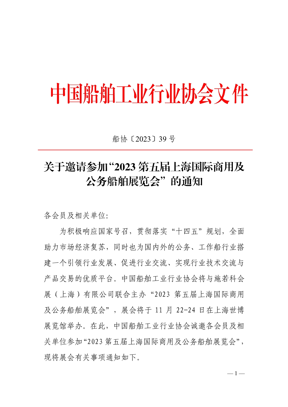 关于邀请参加“2023 第五届上海国际商用及公务船舶展览会”的通知